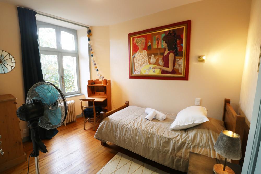 * La Chambre Verte propose deux lits simples (90cm), pouvant être joints pour former un grand lit double (180cm), tables et lampes de chevet, bureau, fauteuil et belle armoire de rangement.
