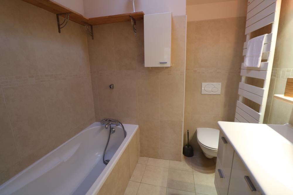 * Elle bénéficie de sa belle salle d'eau carrelée avec vaste cabine de douche, lavabo et toilettes.