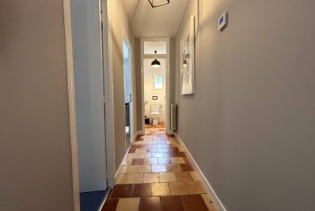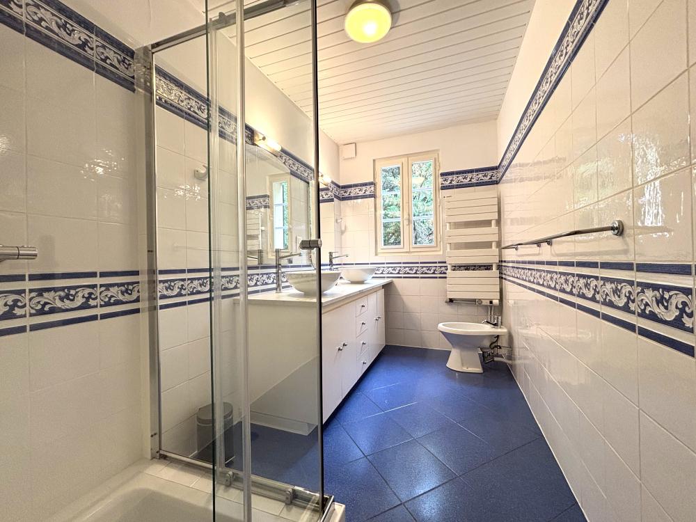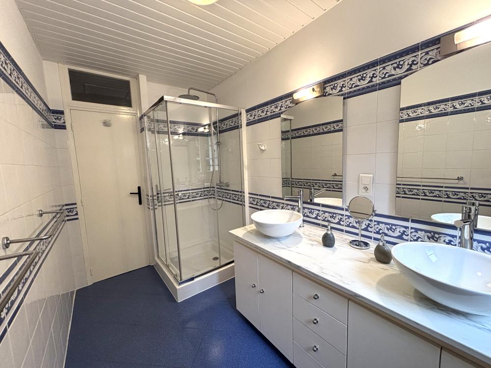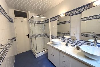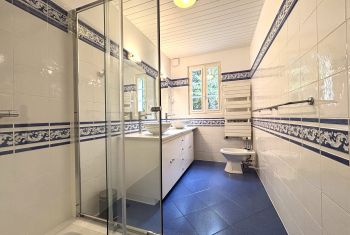 * Commune aux trois chambres, la spacieuse salle de bain familiale offre une grande douche carrelée et un meuble double vasque. Attenante, des toilettes séparées.