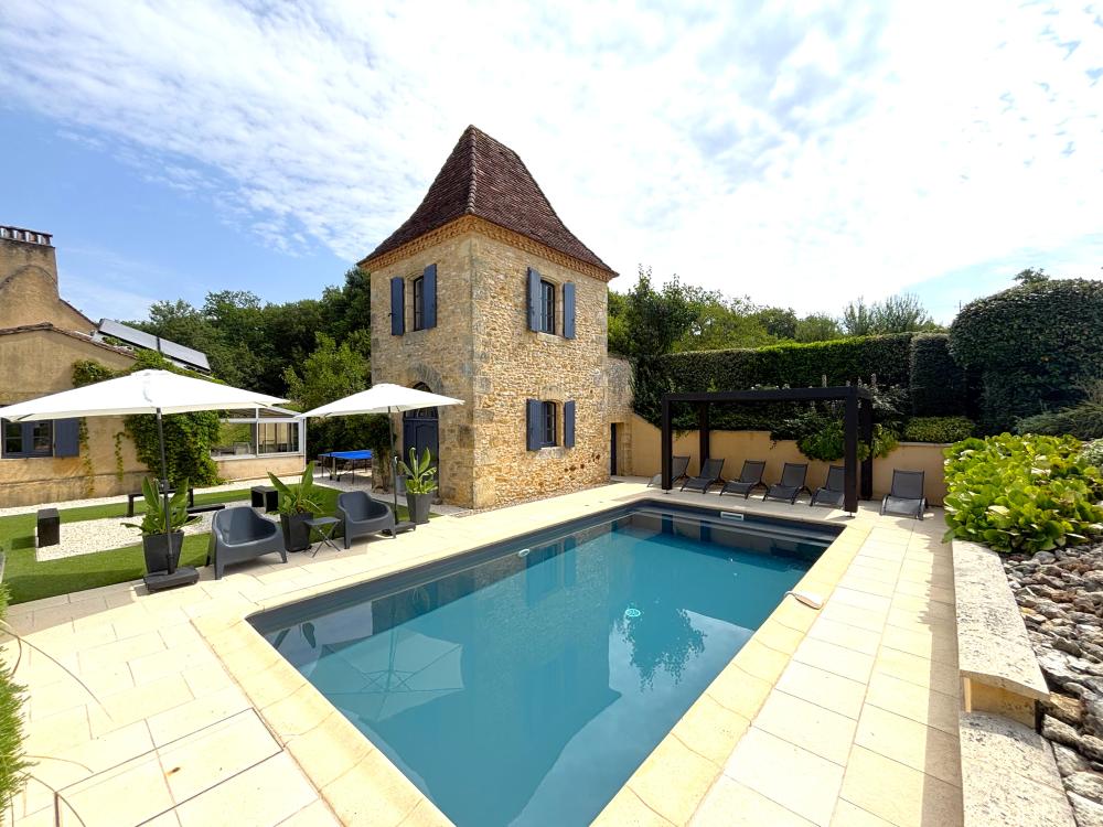 La Maison Principale offre un hébergement de grand confort pour 6 personnes (3 chambres, 1 salle de bain) et son Pigeonnier attenant pour 4 personnes (2 chambres avec sdb ensuite). Nos hôtes ont l'usage unique et exclusif de la grande piscine et vaste jardin paysager.