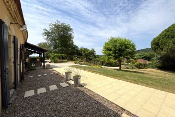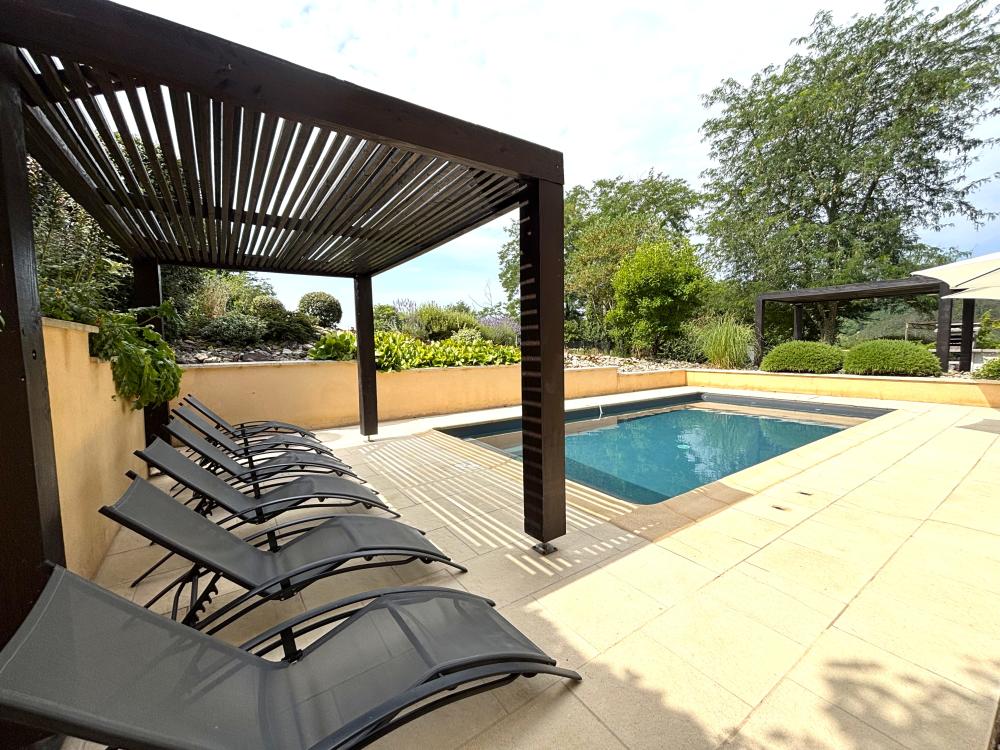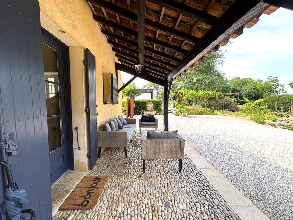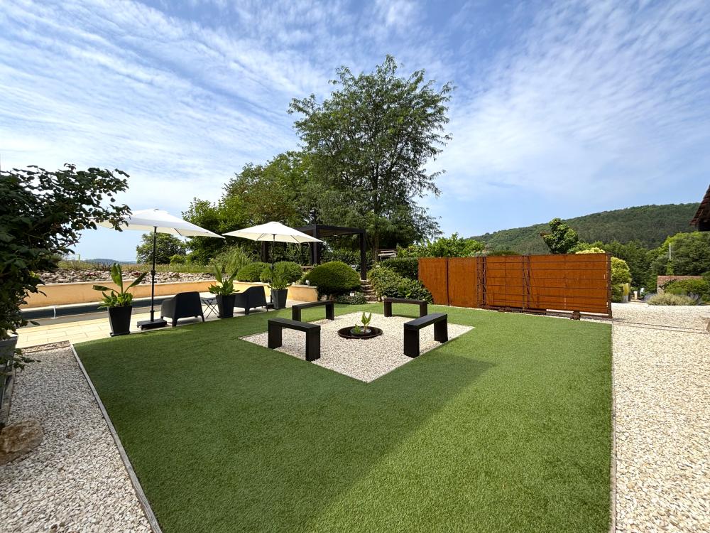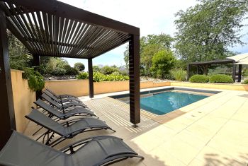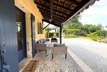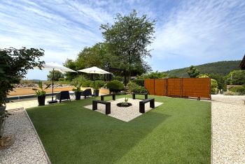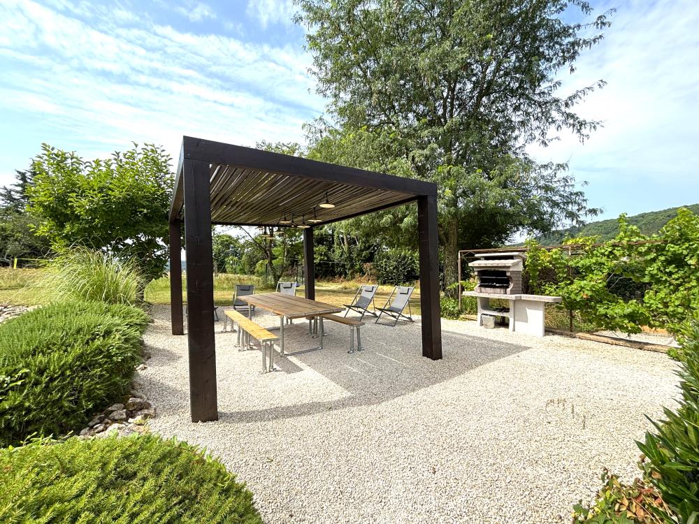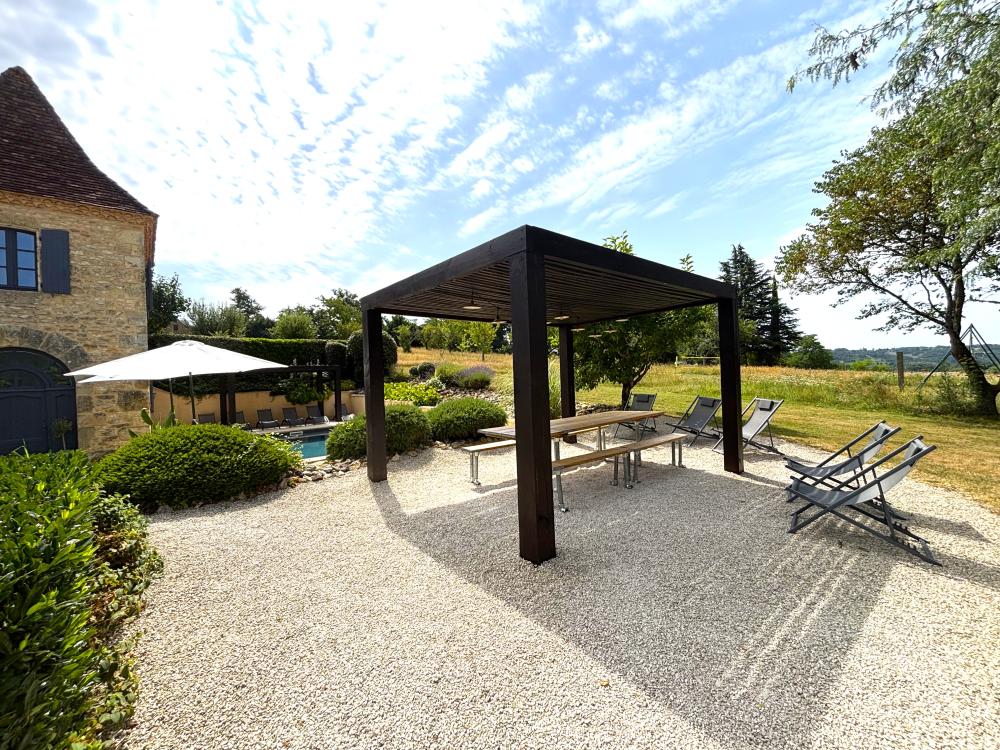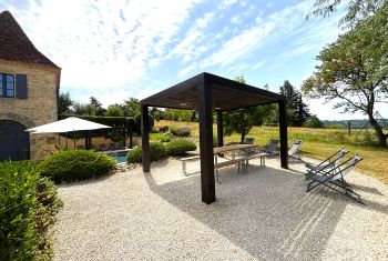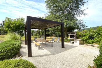 - La grande terrasse est équipée d'une table 10 couverts et d'un grand parasol déporté.
