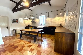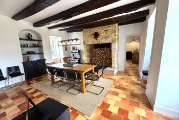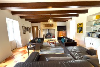 Véritable coeur de la maison, cette pièce baignée de lumière et largement ouverte sur la terrasse grâce à ses doubles portes vitrées.
