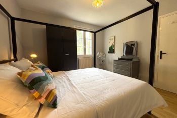 * A l'étage, vous bénéficierez d'une dernière chambre lumineuse offrant un grand lit double en 160cm de large chevets et placard de rangement. Elle bénéficie également d'une salle d'eau privative avec douche, lavabo et toilettes.