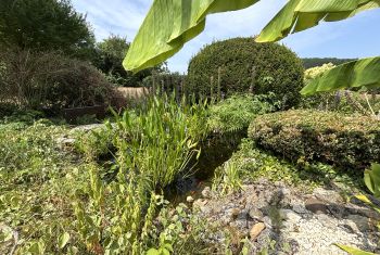 - Le superbe jardin de plus de 10000 m² offre un cadre de nature idyllique. Tandis que ses grands espaces de pelouse permettront au plus jeunes d'y jouer en toute sécurité, ses arbres centenaires et arbres fruitierset multiples recoins romantiques vous invitent au repos et au farniente