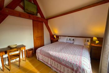 Les deux belles chambres partiellement mansardées se situent à l'étage, de part et d'autre du palier mezzanine :