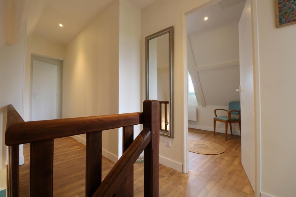Depuis la pièce à vivre, le bel escalier en chêne conduit au premier étage où se situent ::