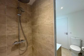 - Elle bénéficie d'une salle d'eau moderne avec douche italienne carrelée, lavabo et toilettes.