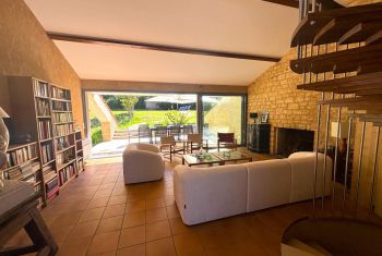 Cette maison atypique vient de faire l'objet d'une rénovation complète de grande qualité, où le charme de ses veilles pierres se marie harmonieusement à de grands volumes baignés de lumière et à un équipement des plus modernes, dont la climatisation dans toutes les pièces et une literie neuve de qualité.