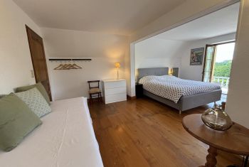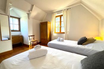 * De l'autre côté du palier, la troisième chambre CLIMATISEE, de 12m², est meublée -de deux lits simples pouvant être joins pour former un grand lit double- de deux chevets et une armoire/penderie.