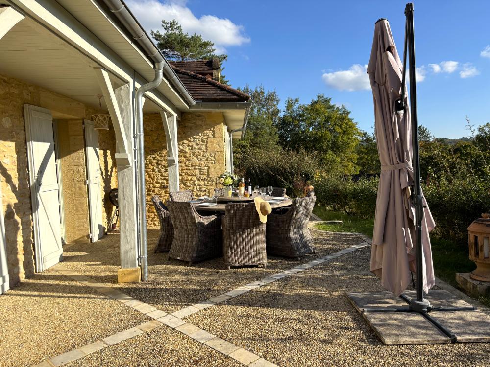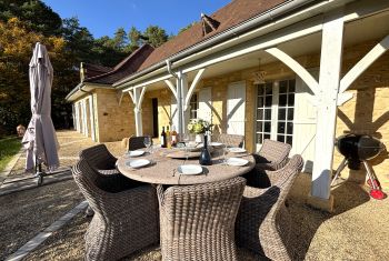 * "tout n'est que luxe, calme et volupté" disait le poète ; à croire que Baudelaire invitait à venir séjourner aux Combettes tant ses vers retranscrivent le sentiment de quiétude et de douceur de vivre que l'environnement champêtre et boisé confère à ses visiteurs. Car, de nouveau, rien ne viendra ici troubler votre quiétude, confortablement installés pour de longues tablées sur l'espace terrasse à l'avant de la maison, ou allongé à l'ombre des arbres centenaires pour un instant de rêverie et de farniente en contemplant la magnifique vue qui s'offre à vous.