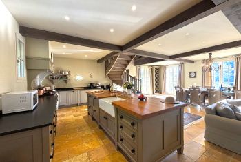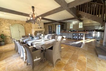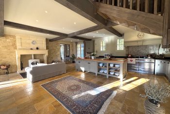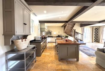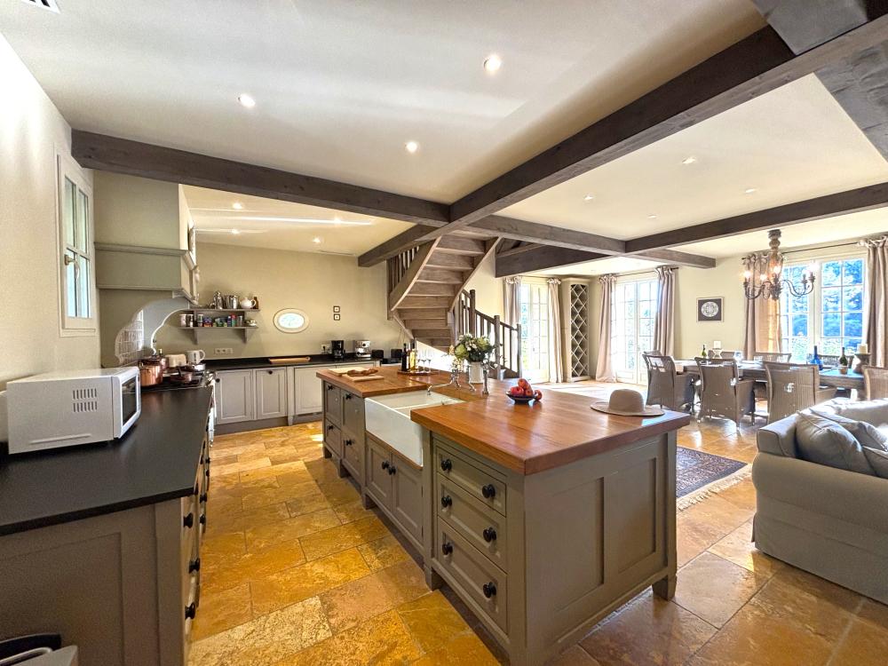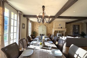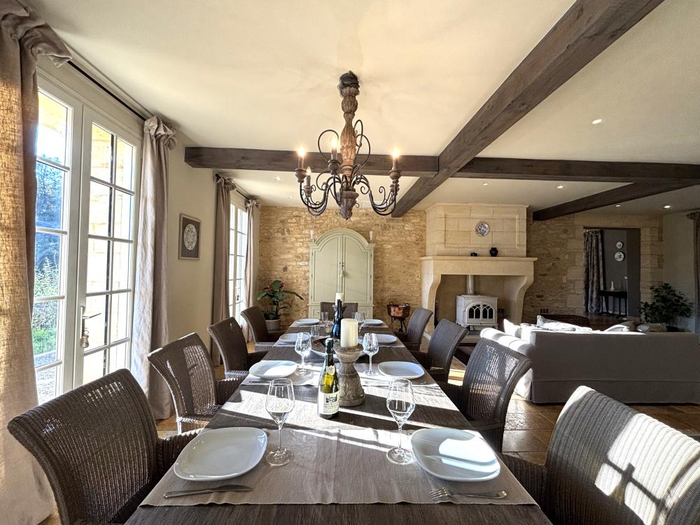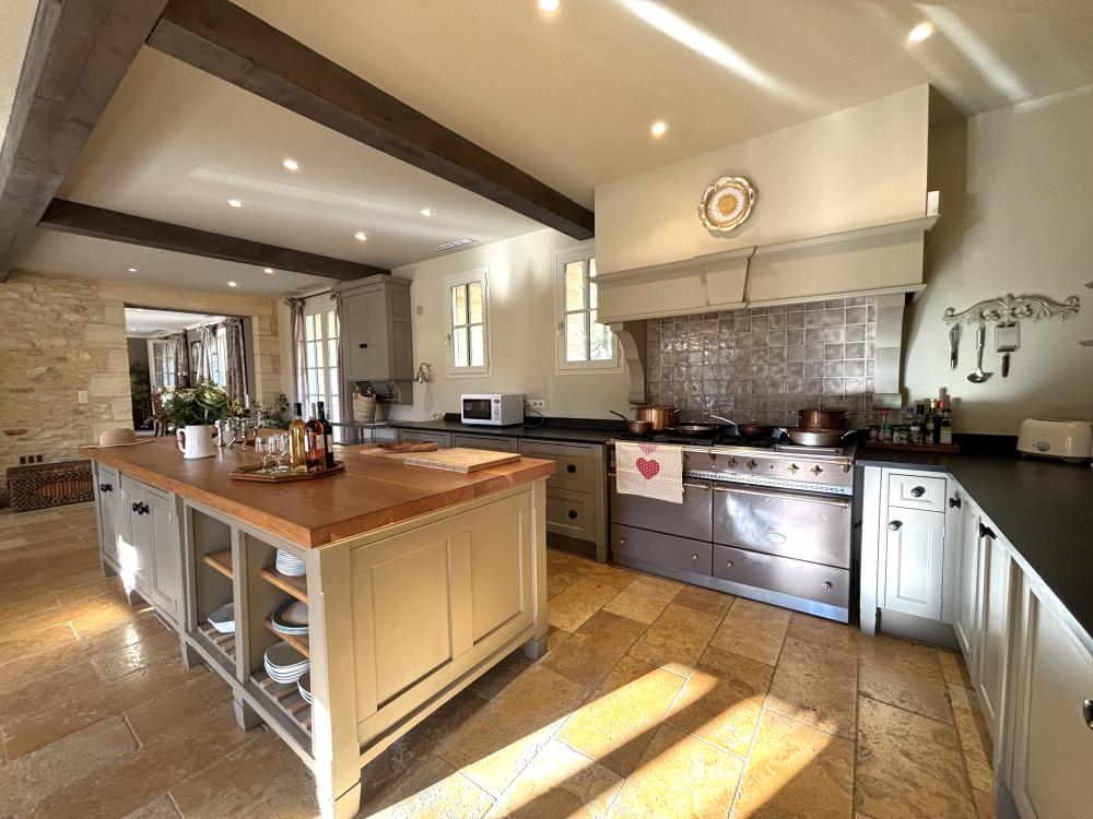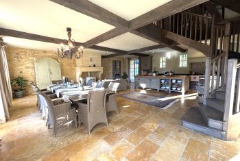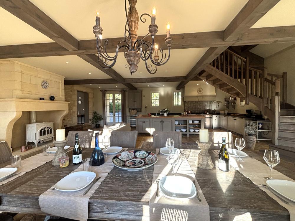 * Une splendide pièce à vivre de plus de 80m², avec cuisine parfaitement équipée, vaste îlot central et espace repas : assurément la pièce majeure de la maison où vous aimerez cuisiner les bons produits du Périgord et vous attabler tous ensemble pour de bons repas.