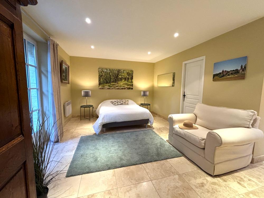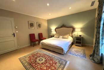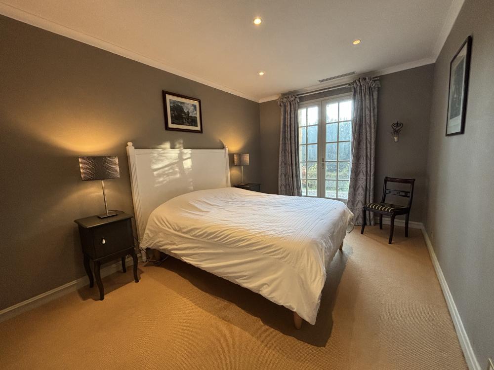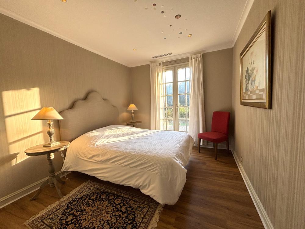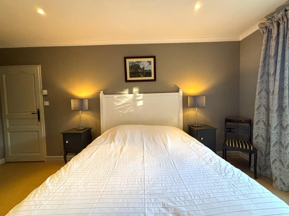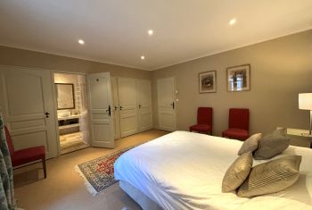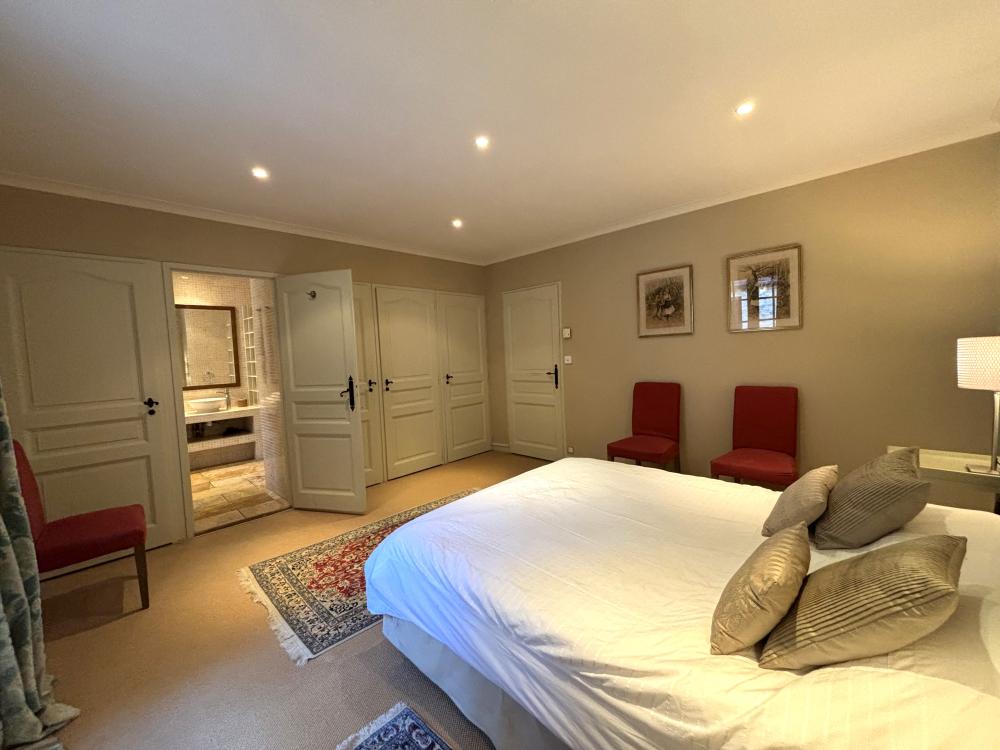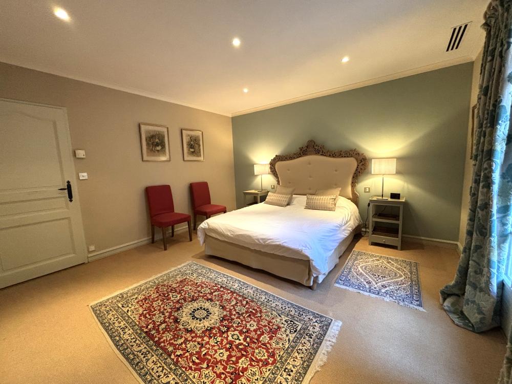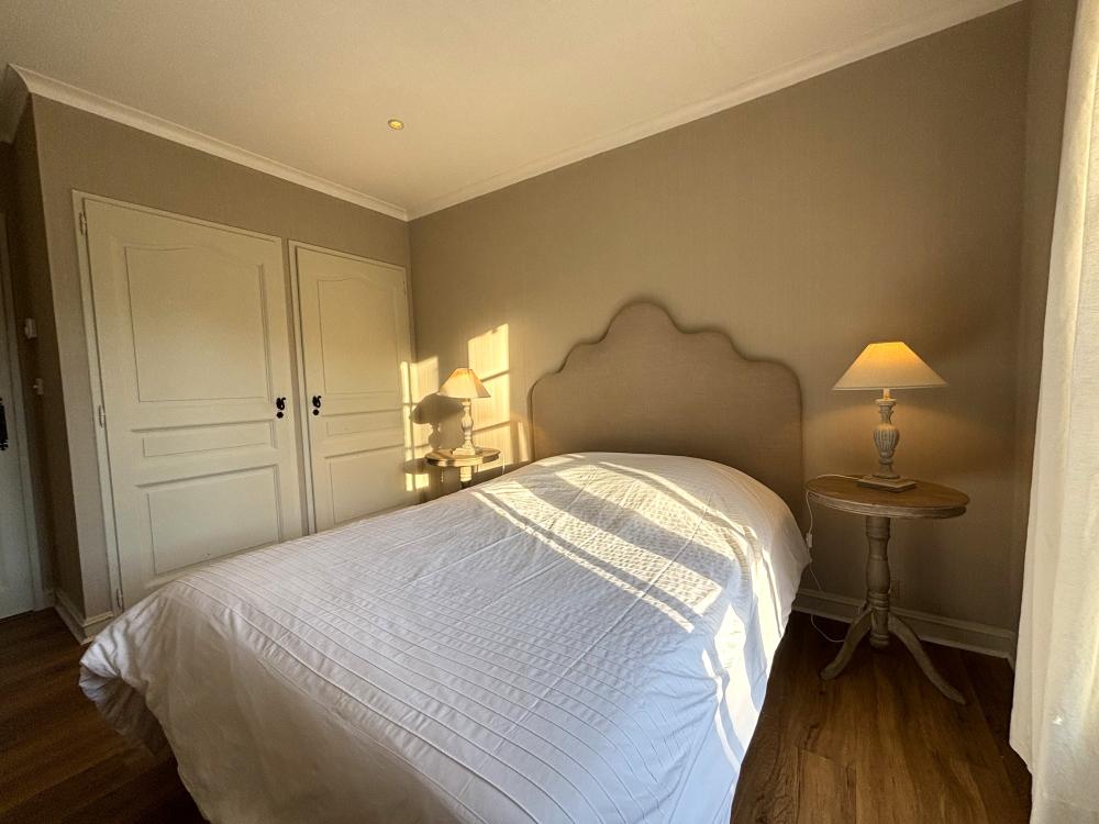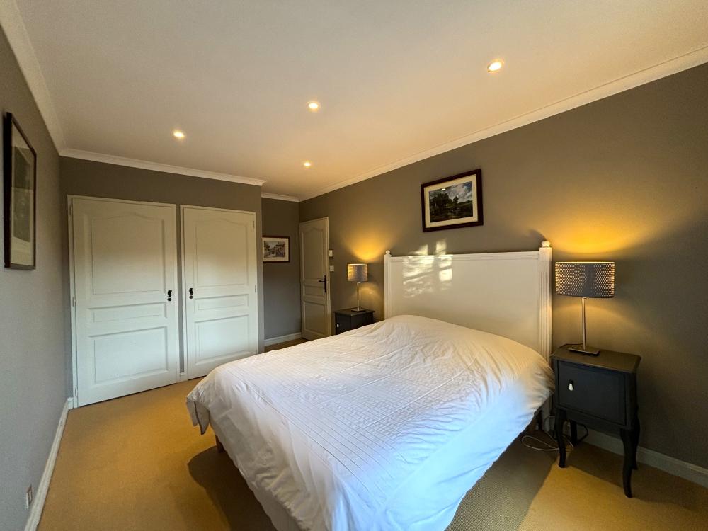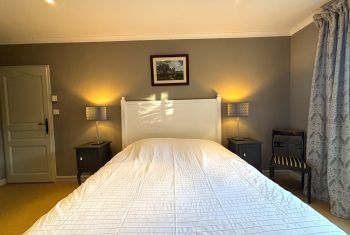 * Une première chambre double principale avec un grand lit double (160x200), deux chevets, chaises, placard et penderie.