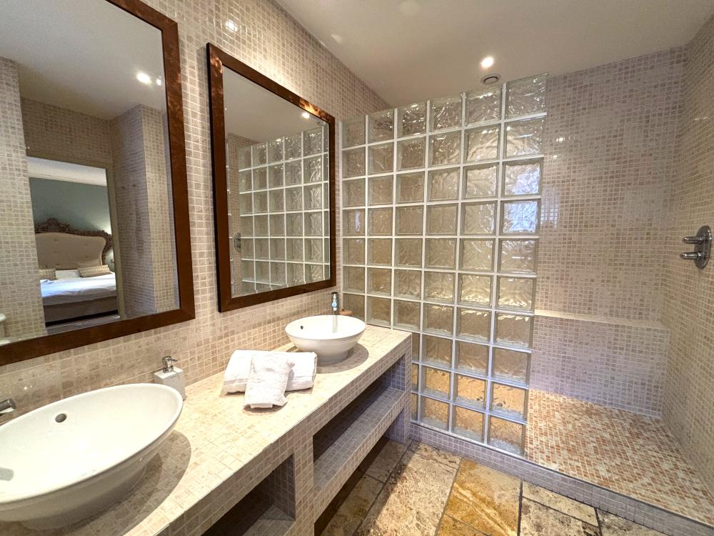 * Elle bénéficie de sa propre salle d'eau ensuite avec douche carrelée, meuble double vasque et toilettes.