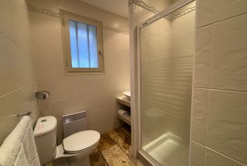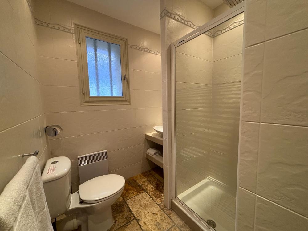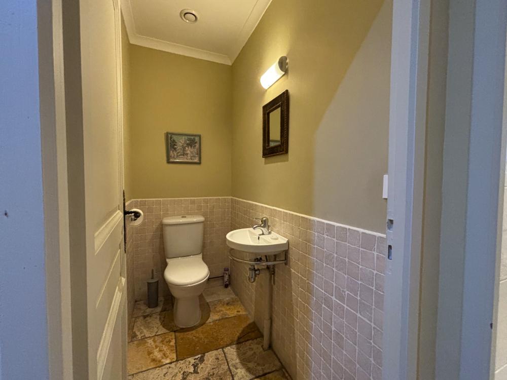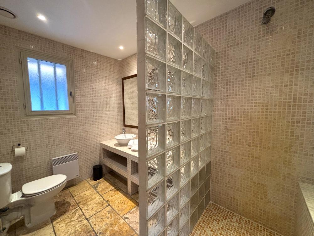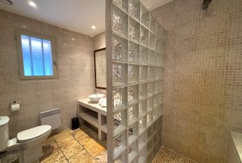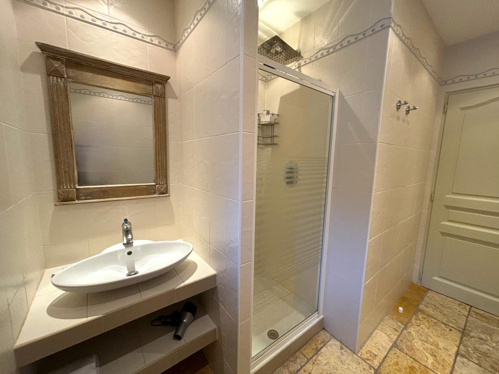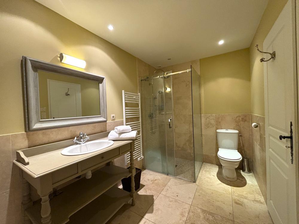 * Une salle d'eau avec douche, meuble vasque et toilettes et des troisièmes toilettes séparées