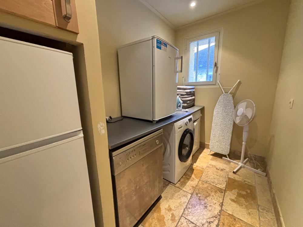 * Une buanderie avec un second réfrigérateur, un congélateur, machine à laver, lave-linge et nécessaire à repassage complète l'agencement de la maison principale.