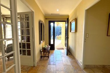 Toutes les pièces de la maison disposent de larges portes-fenêtres permettant d'accéder à la terrasse et au jardin de part et d'autre de la maison, offrant ainsi une communication "dedans-dehors" idéale en été.