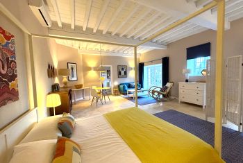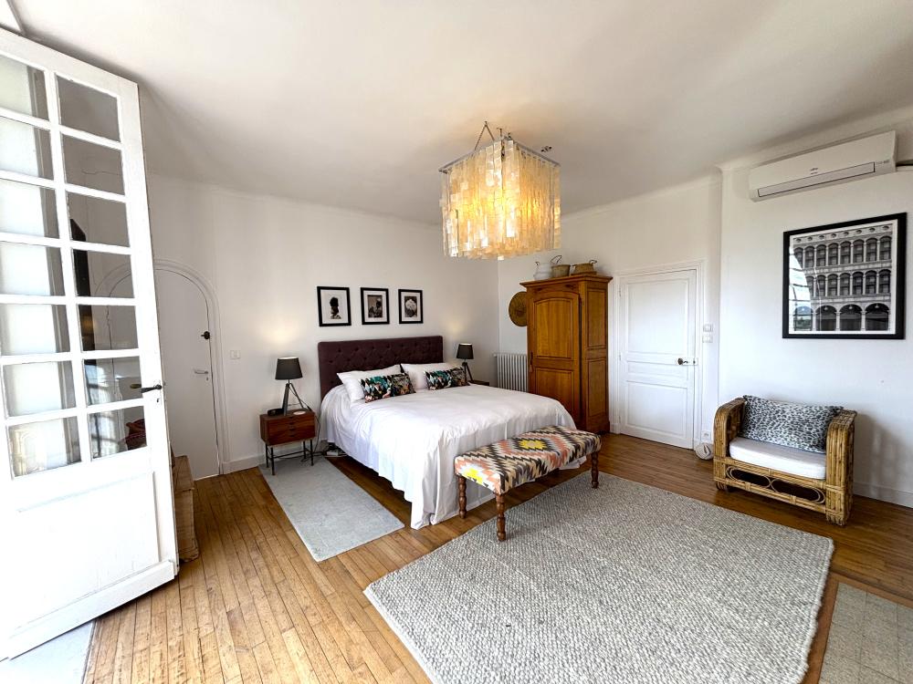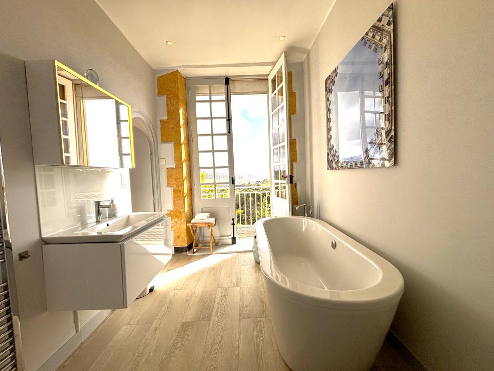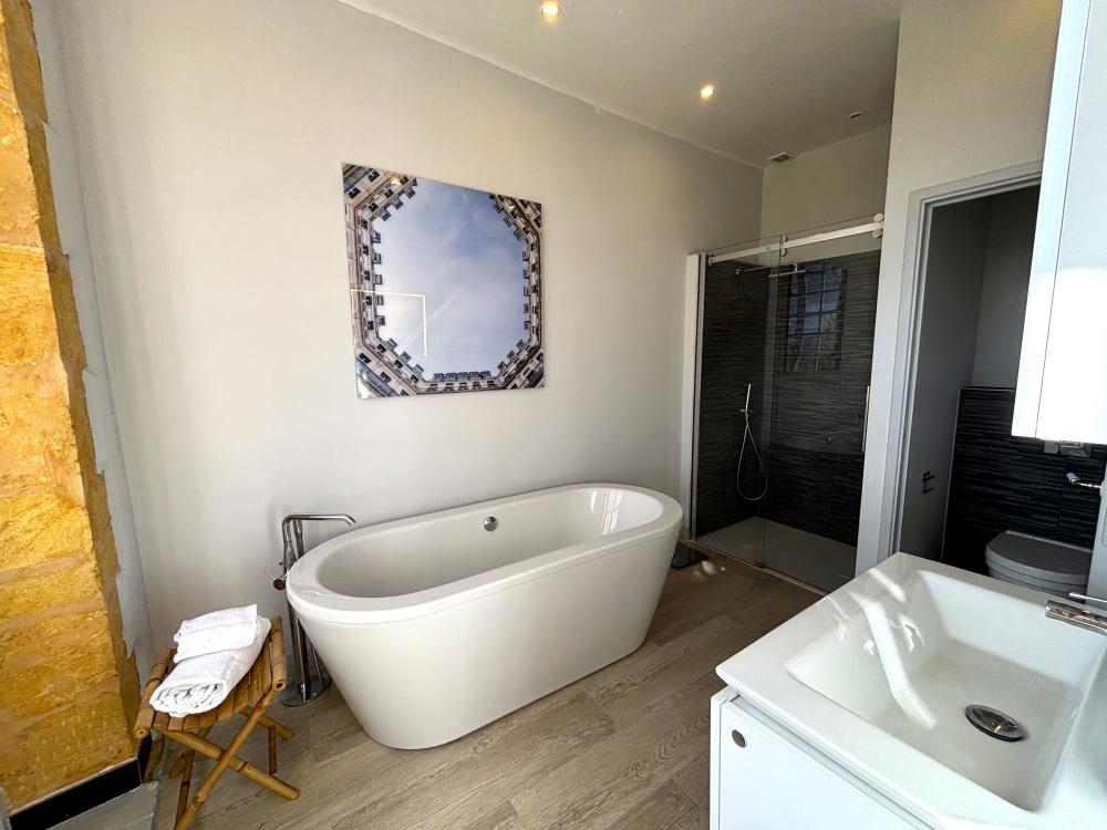 Elle bénéficie de la climatisation centrale et d'une salle de bain ensuite avec baignoire îlot, douche et meuble vasque.