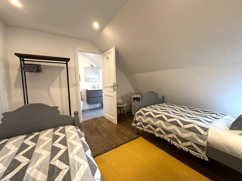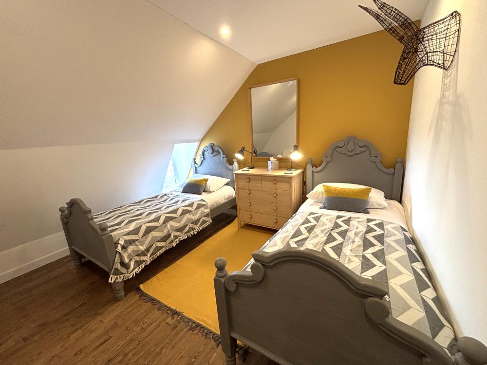 - La troisième chambre offre deux lits simples, une commode à tiroir et une penderie