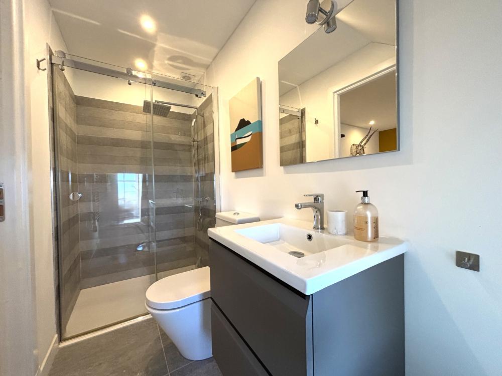 - d'un salle d'eau privative avec douche italienne carrelée, lavabo et toilettes.