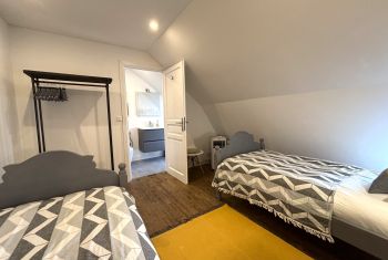 - La quatrième et cinquième chambres sont élégamment meublées de deux grands lits doubles en 160cm de large, de chevets et de meubles penderie.