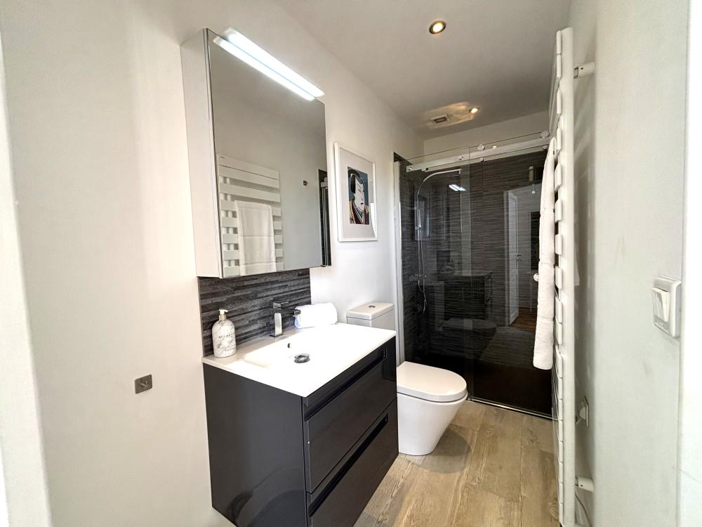 - Elle dispose de sa propre salle d’eau en suite avec double carrelée, wc et meuble vasque