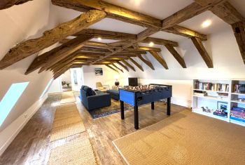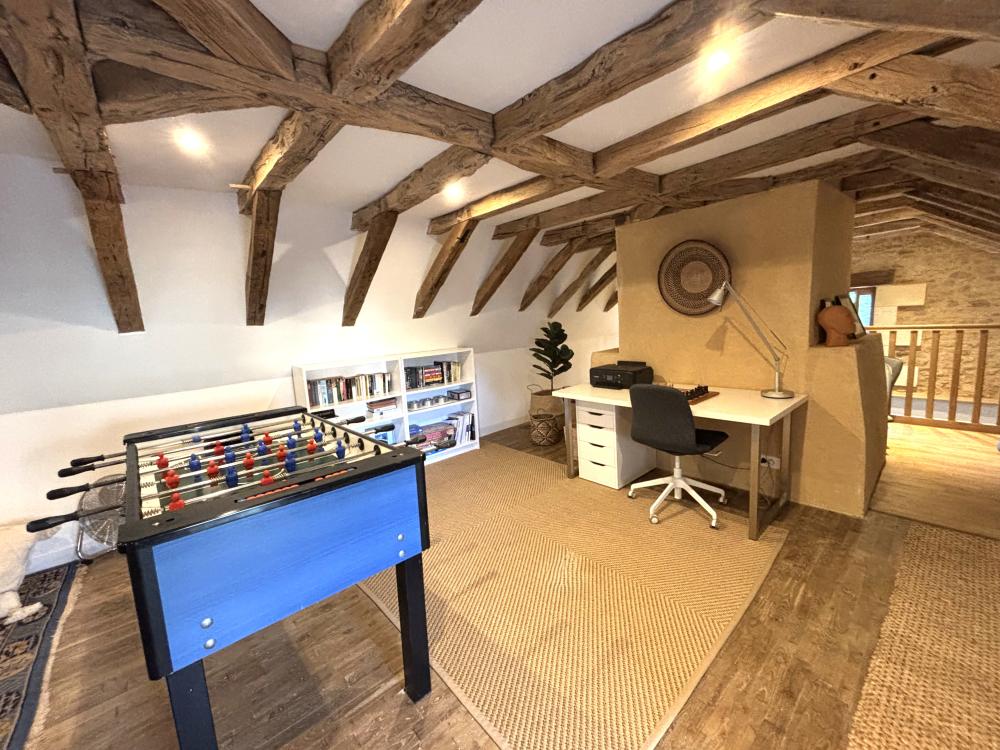 - La vaste pièce à vivre offre au choix un second salon TV, une salle de jeu avec baby-foot ou un espace travail avec bureau et siège.