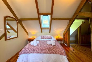 - Une quatrième chambre, meublée d’un lit double, d'une penderie, commode, bureau et fauteuil. Un lit simple en alcôve, permet à un enfant de dormir prêt de ses parents.
