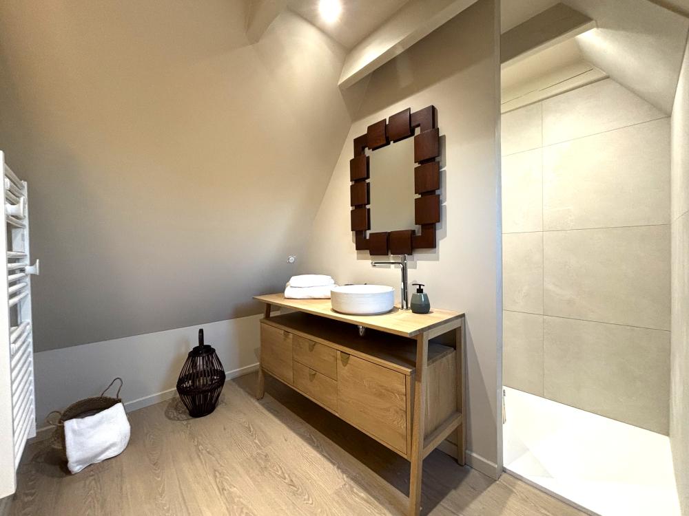 * Attenante, sa salle d'eau privative propose une douche à l'italienne, un meuble vasque et des toilettes.