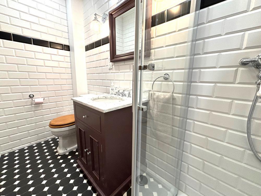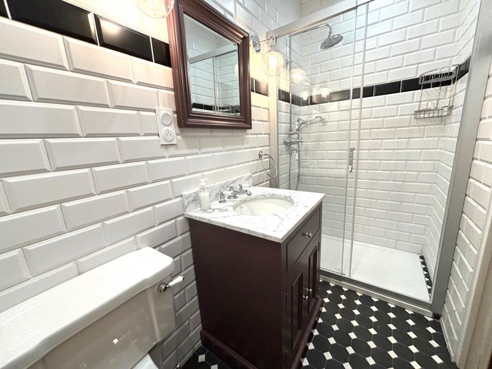 Comme toutes les chambres de la Maison, elle dispose de sa propre salle d'eau privative avec douche italienne, meuble vasque et toilettes.