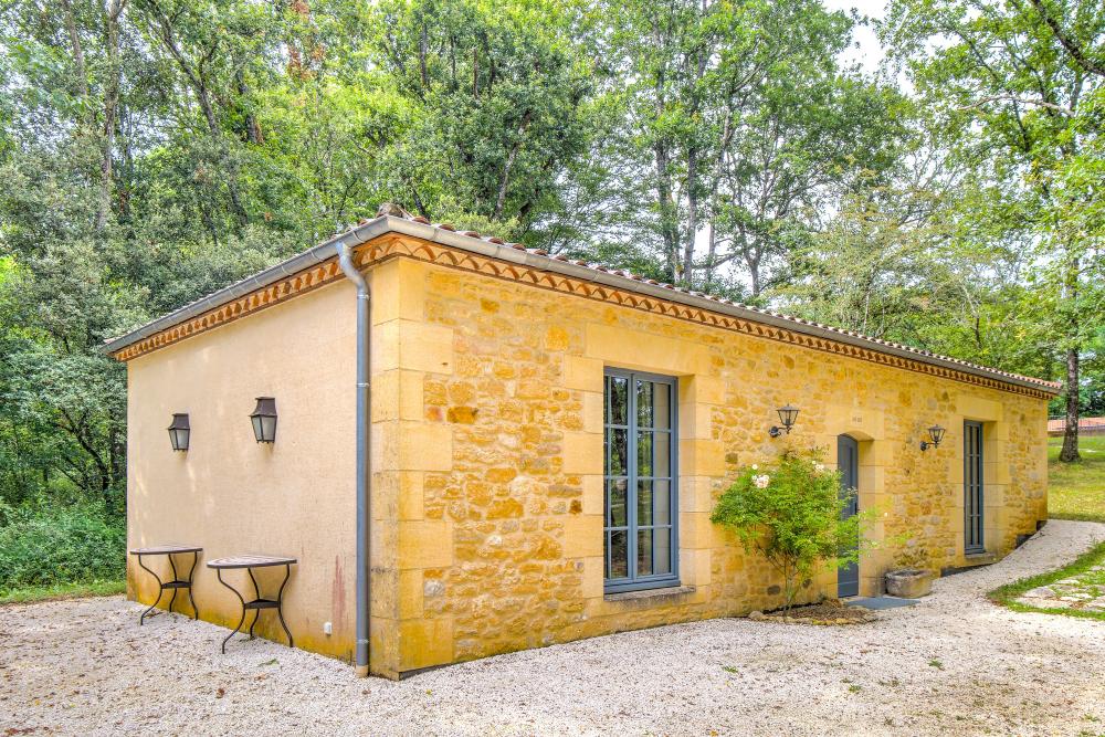 Une douche extérieure, deux cabines pour se changer, une petite cuisine d'été avec frigo américain et lave-vaisselle, et des toilettes indépendantes sont accessibles au pool house.