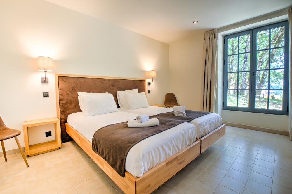* 3 chambres doubles dont les deux lits simples en 90cmx200cm peuvent être à loisir séparés ou joins pour former un grand lit double.