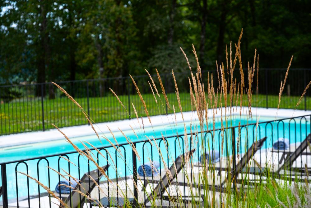 * La piscine au sel, aux dimensions généreuse (15mx5m) offre un espace pataugeoire (20cm), et un bassin de 1m à 1,5m de profondeur. Entièrement clôturée et équipée d'un volet électrique immergé, elle offre une double sécurité optimale. Ouverte de début Mai à Fin Septembre, la piscine est chauffée à 28 degrés pour le confort de nos hôtes.