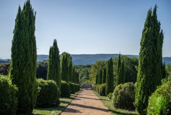 * Le parc s'étend sur plus de trois hectares de pelouse, de recoins romantiques à l'ombre des arbres centenaires, et de majestueux jardins à la française avec en point d'orgue son bassin et ses trois fontaines qui s'illuminent à la nuit tombée.