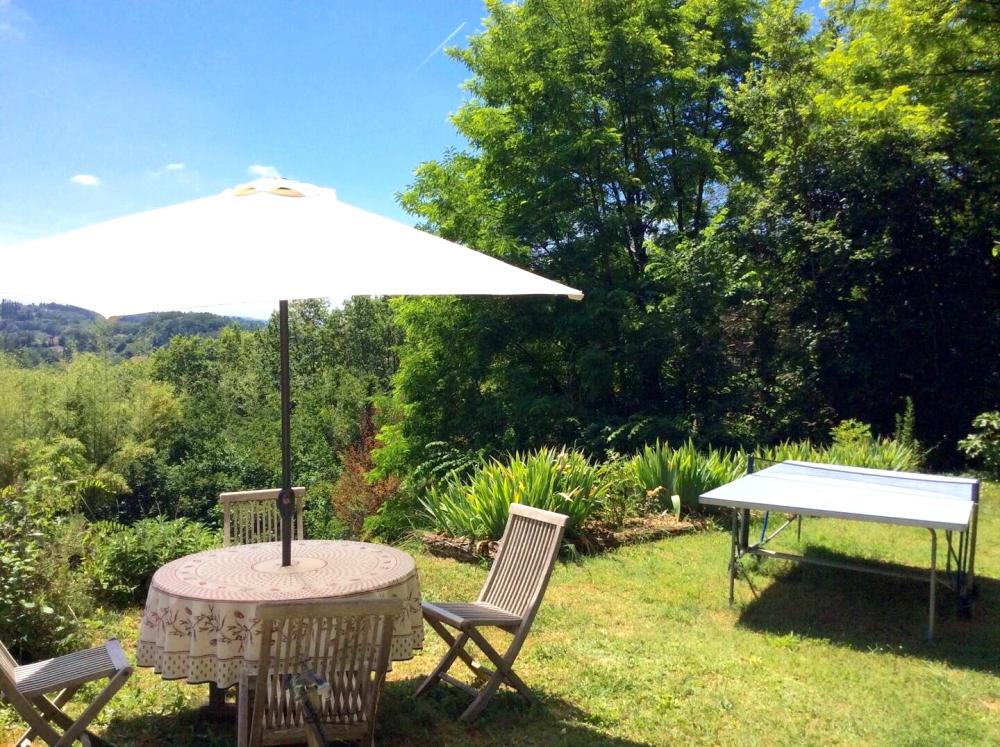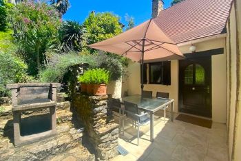 * La terrasse supérieure est équipée d'une grande table carrée, de 4 chaises et d'un parasol, vous permet de déjeuner en extérieur. Un barbecue maçonné à charbon est à votre disposition.